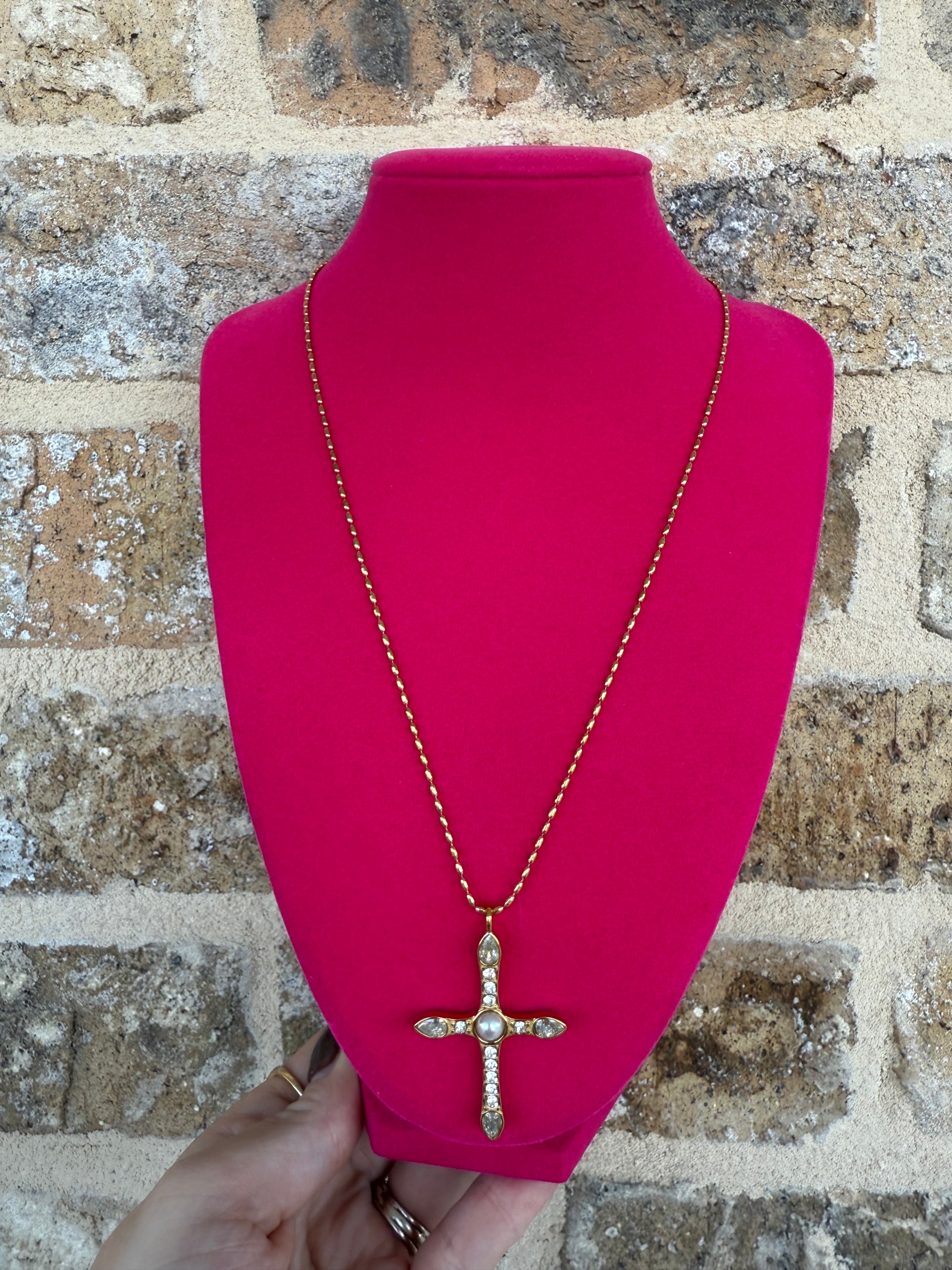 DIAMOND WITH PEARL MEDIUM LENGTH CROSS